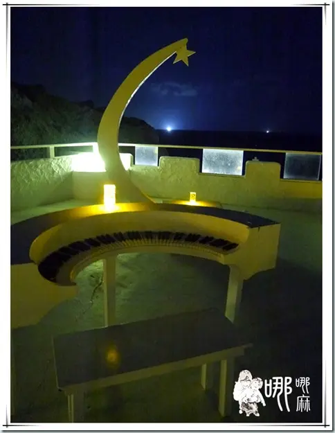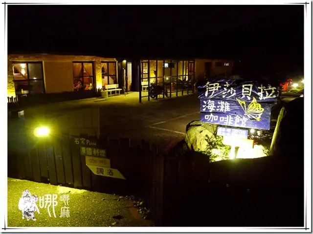 從斜坡上就可以看到海灘咖啡館的燈光充足,