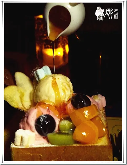 掀開寶盒上的料,會看到底下是烤的香酥的蜜糖吐司,