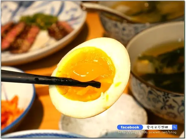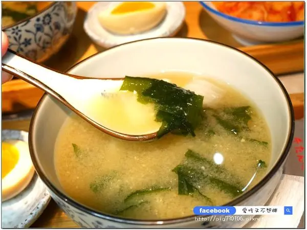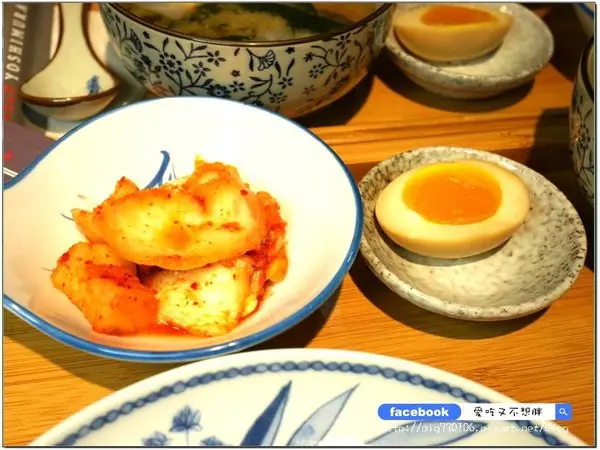 搭配的小菜有泡菜及溏心蛋,搭配泡菜一起吃,很能解膩,加上泡菜帶點微辣,也很能開胃耶