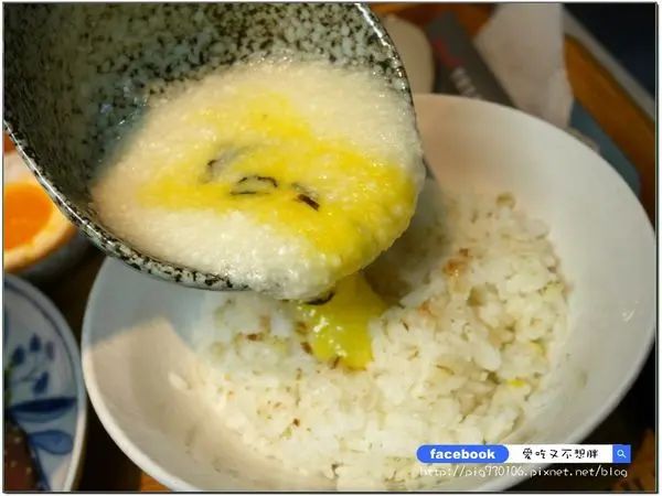 如果覺得單吃白飯沒味道的話,也可以再多加點一個月見山藥泥,中間有顆生雞蛋,拌一拌倒入飯裡頭一起吃,更多了滑順的口感。