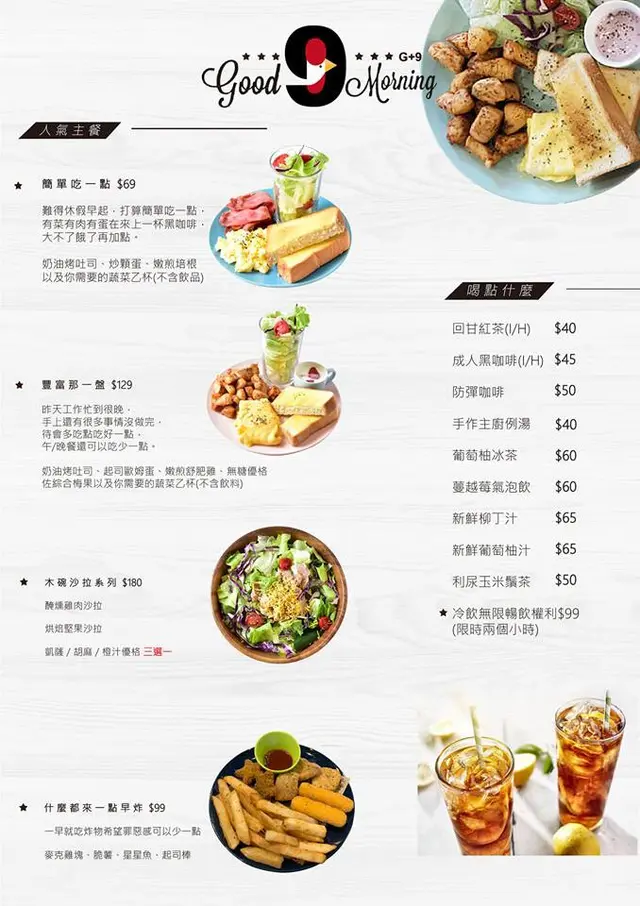 G+9精釀啤酒餐廳是一間從早午餐營業到宵夜場的餐酒館,讓你半夜肚子也能找到食物吃