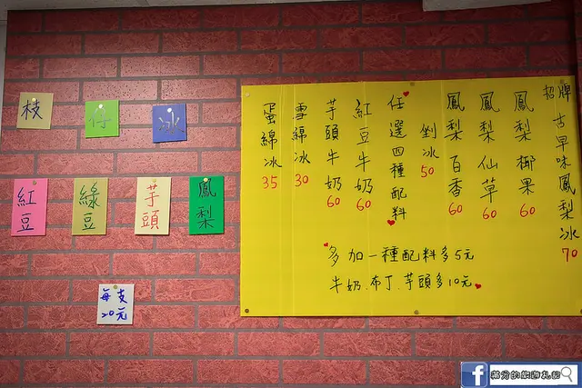 冰店位於蘆洲熱鬧的街市中,與其他業者共用店面,裝潢簡單,但招牌顯目
