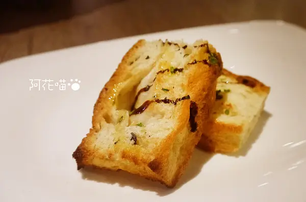 用餐前,先來嚐嚐這淋上陳年老酒醋的佛卡夏,近聞散發淡淡迷人香氣