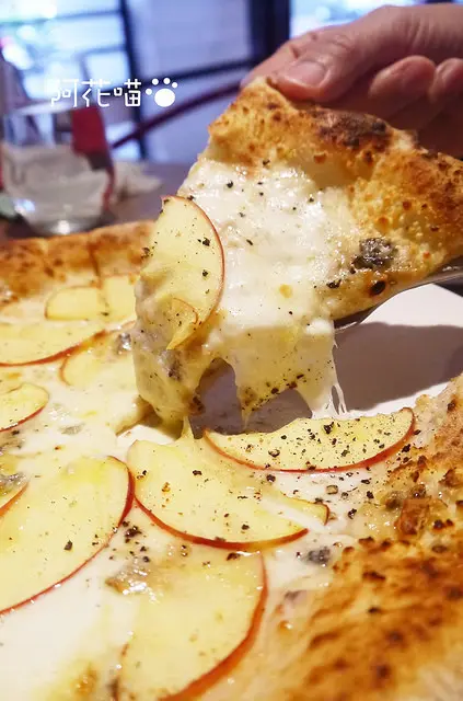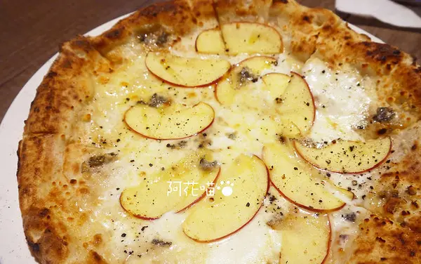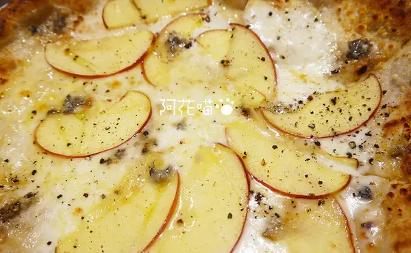 兩種起司為主要角色,以莫札瑞拉起司為底、藍紋起司為襯托,完美呈現蘋果香