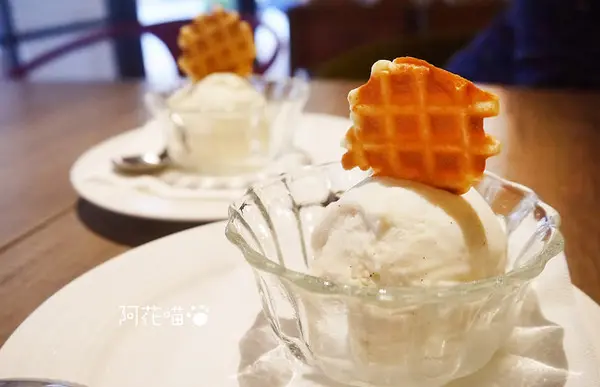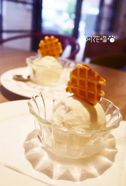 整體味道偏甜,我們發揮創意將一起上桌的白蘭地淋在冰淇淋上