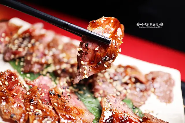 炙燒牛小排,烤至大約七分熟,帶有鮮嫩的粉紅肉色