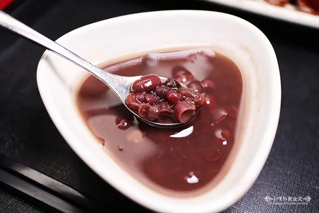 紅豆湯熬煮的濃郁,裡面還保有綿密的紅豆粒,飯後品嚐,相當甜口