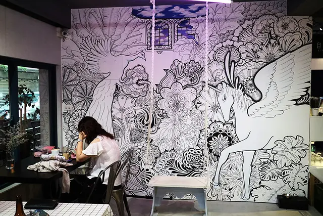 一進店內,有一大片獨角獸的手繪牆面,感覺畫工相當細緻