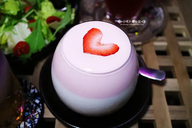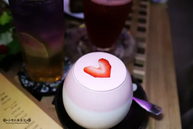因為看了網路上及IG打卡而點了這杯,飲品是分層的色彩,底層是新鮮牛奶,上層是芬芳的草莓鮮奶油,再於最上面,擺放一片心型草莓