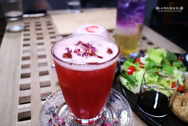 以莓果茶為基底,並加入檸檬汁特調,整杯的顏色紅得醉人