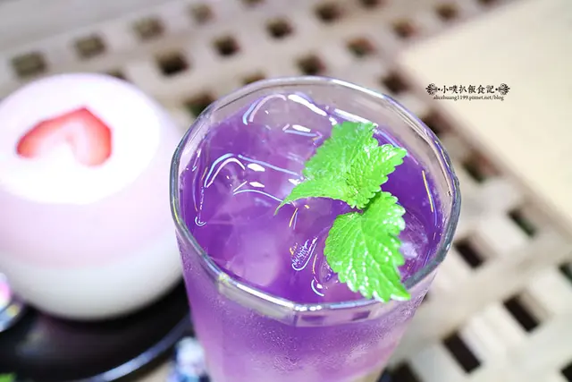 底層是新鮮的桂花蜜,加入現榨檸檬汁,最上層是藍紫色的蝶豆花汁
