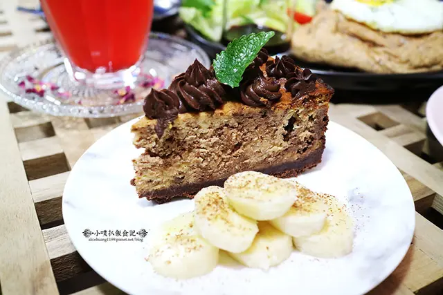 蛋糕體不乾,蠻濕潤的口感,裡層的巧克力起士蛋糕,加入焦糖香蕉,層層堆疊的口感,感覺相當match