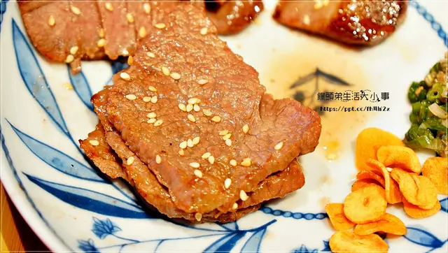 店家的牛舌跟日本牛舌不同的地方就是會搭配上鹽蔥,炸蒜片,胡麻蒜片,給老饕們享用