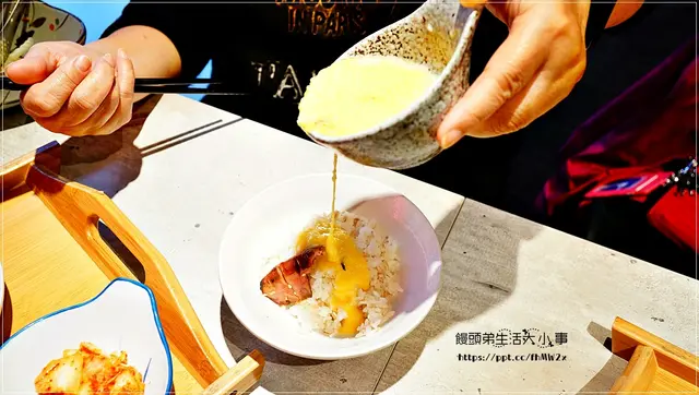 把山藥泥跟蛋黃攪拌後,跟麥飯拌再一起吃,真的是人間美味啊!!