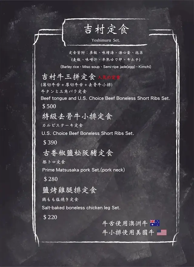 吉村·牛舌 Yoshimura菜單