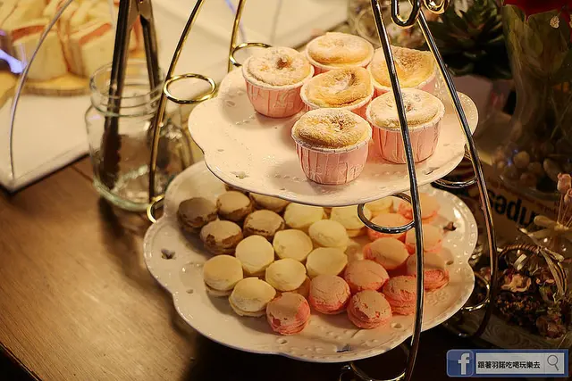 雙層架上的台式馬卡龍及杯子蛋糕也是個很不錯的選擇