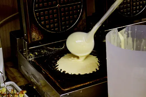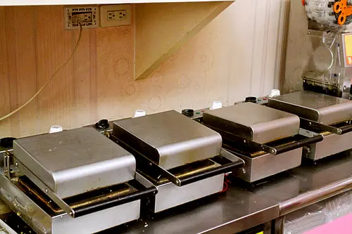 看著老闆烤著熱呼呼的鬆餅 也是一種享受