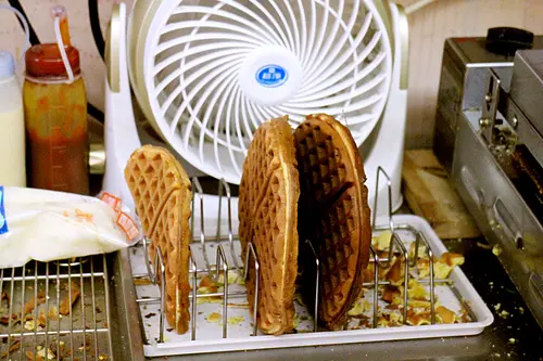 鬆餅烤好後 還要吹電風扇冷卻一下 增加脆度