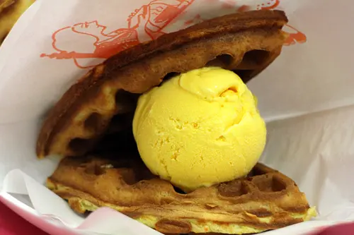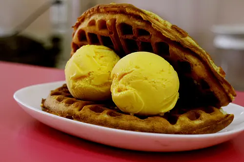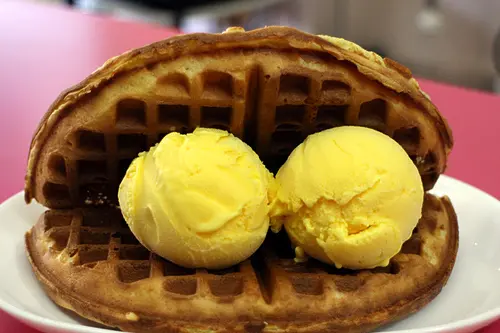 鬆餅加上明治冰淇淋 多層次的口感撼動著諾咪的味蕾