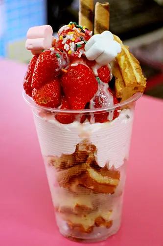 草莓明治冰淇淋 上面還灑了巧克力米 奶油