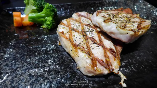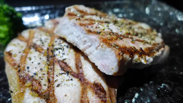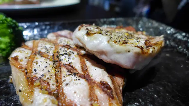 美麗的炭烤痕跡,灑上黑胡椒粒,想要更加提味的話,桌上還有海鹽可自行添加