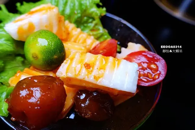 這是招待的小菜,山藥淋上酸甜的梅汁~清脆的口感好爽口,好開胃!