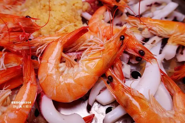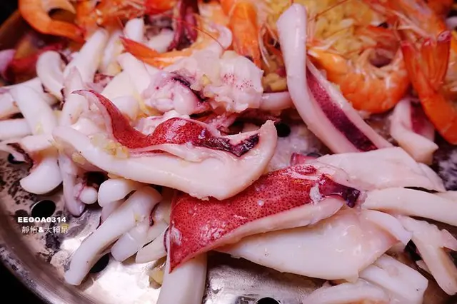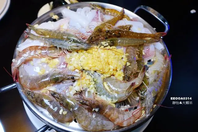 每一層都是滿滿的海鮮,不同海鮮有著簡單的調味,像是蒜末、蔥、薑等!蝦子真的是活跳跳的唷~整個活繃亂跳,為了要拍照將蓋子拿掉,結果一直跳出來 XD