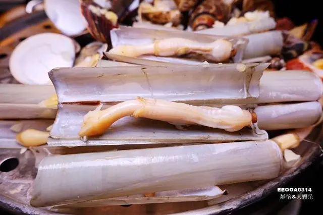 第一次見到竹蟶感覺好新奇,長得就像是竹子似的,一口吃掉口感真不錯,還蠻有彈性的!