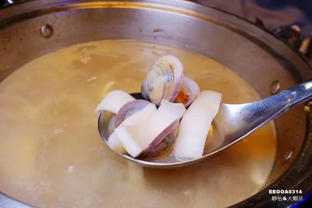 除了大啖生猛海鮮外,還可以吃火鍋,這湯還不是一般的高湯而已,是養生椰子雞湯,鍋內有著不少的赤嘴、雞肉及椰肉,會將海鮮放上來蒸,等海鮮蒸完這一鍋更是滿滿的精華了!
