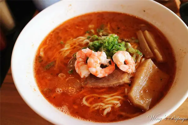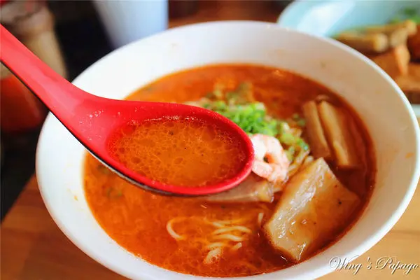 這款拉麵湯頭加入蝦油及蝦酥配製而成,喝來有濃郁的鮮甜蝦味,