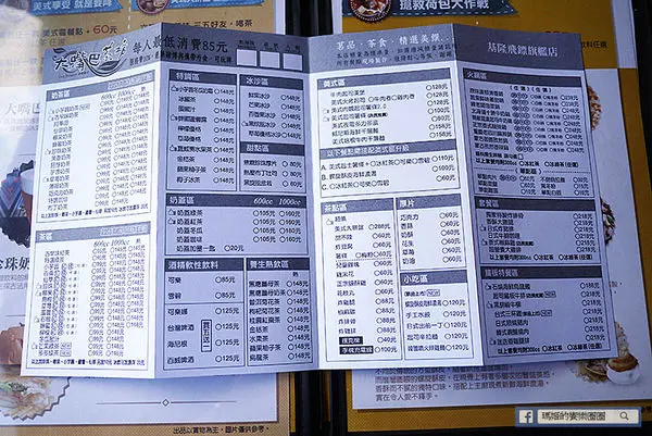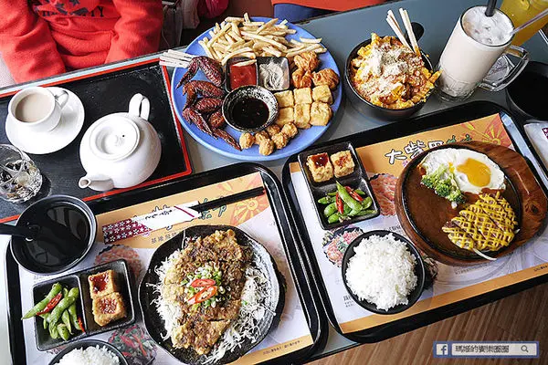 菜單種類很多,有各式茶品、特調飲料,餐點有搭配聊天小食、美式料理、火鍋、套餐和鐵板料理,最近還推出平價的商業午餐,不久後就會出現在菜單上。
