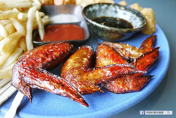 裡面包含了烤雞翅,焦糖油亮的色澤,吃起來皮薄肉嫩,吮指回味!