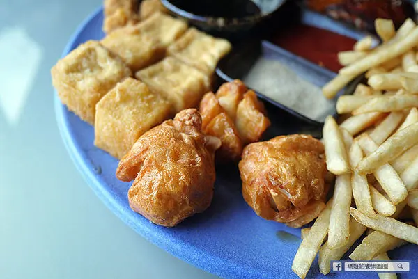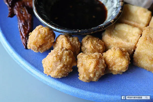 炸豆腐切成四小方塊好入口的尺寸,看是要沾醬或是沾胡椒鹽吃都好,裡面的豆腐夠嫩還保有多汁的口感。