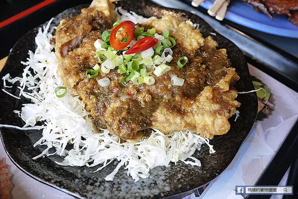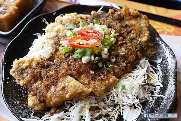 泰式椒麻雞是人氣高的料理,我個人也是挺愛的,這雞肉的份量很可以,酥炸後淋上泰式酸辣醬,再灑上蔥花和生辣椒,看起來就很可口。