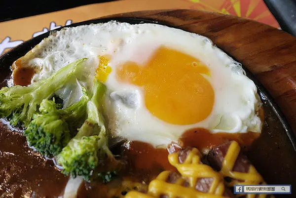 配上太陽蛋和花椰菜,沾上醬汁吃很對味!