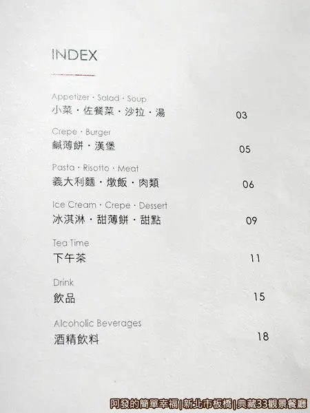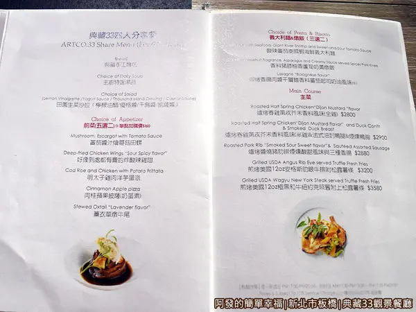 前一陣阿發和幾位30多年的老友,要舉辦定期的家庭聚會,主辦者提出幾處聚會地點,當老婆聽到其中這處「典藏33」時,她興奮的說:「這間,我之前一直想要你帶我去耶,聽說在新北市政府樓上有名的景觀餐廳而且價位也不貴,用餐氣氛浪漫、景色不錯、不少人推薦它的薄餅...」