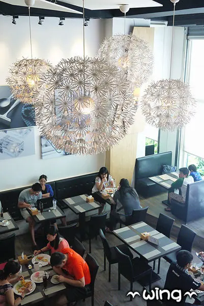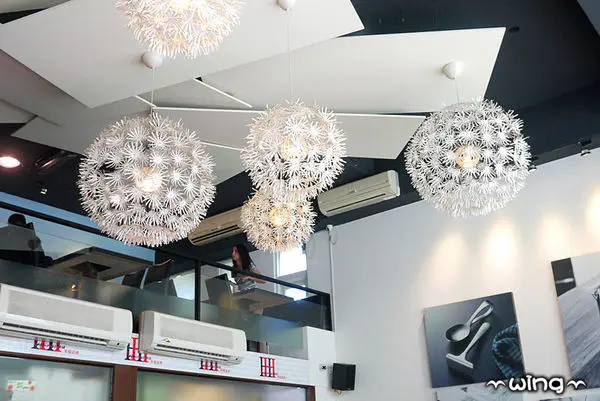 垂掛的白色球型吊飾讓店內增添不少時尚設計感。
