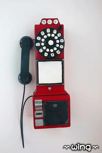 樓梯牆面上的紅色古董轉盤電話很吸睛,路過忍不住都會瞧上一眼。