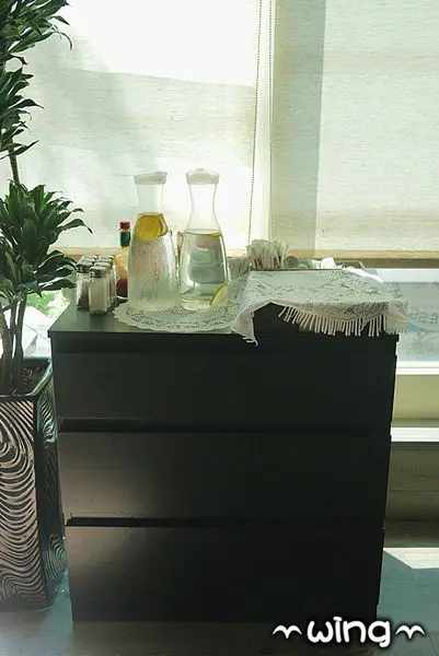 餐具及開水放在門口旁櫃子自取,各式醬料也請自由取用。