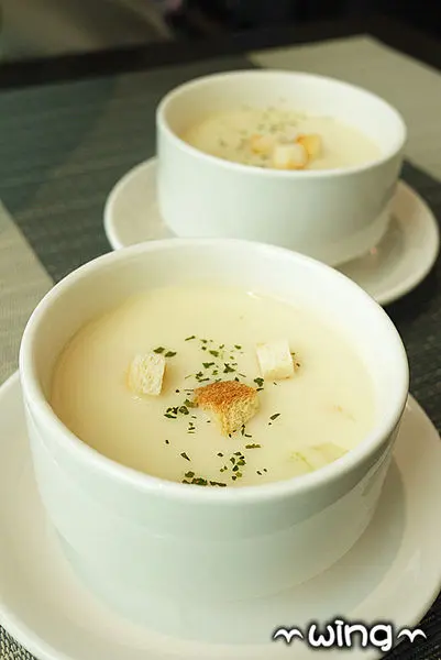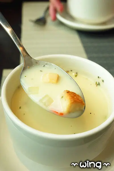 早午餐皆有附濃湯,湯裡加了紅蘿蔔、洋蔥等蔬菜熬煮,