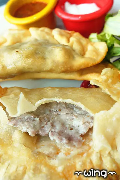 簡單調味的豬肉內饀配上酥脆外皮,其實單吃就蠻能嚐出食材本身的美味,