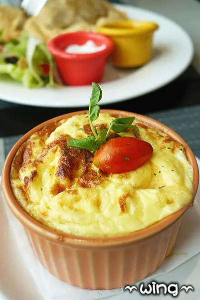 蛋香濃郁,熟度適中不乾澀,鹹香的培根則為烘蛋提味了不少,