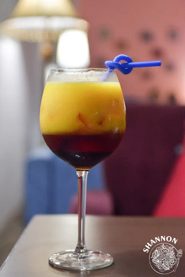 使用了水蜜桃、荔枝酒、琴酒和Vodka下去調成的酒品,色彩鮮艷一杯滿滿的紅酒杯非常的大方,攪拌均勻後一喝甜甜的跟果汁一樣完全是一杯女生熱愛的水果調酒,來這邊和朋友聚餐聊天可以喝很久~香香甜甜的有水蜜桃和荔枝的香氣!(飲酒後請勿騎乘機車、駕駛汽車)