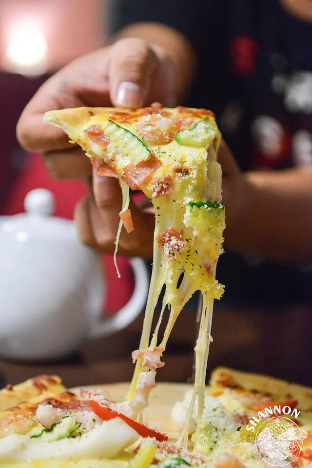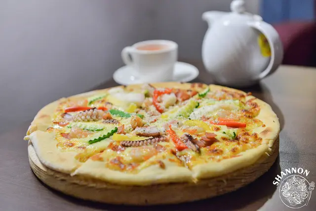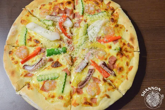 起司的氣味濃郁搭配上海鮮口感不錯、剛好且有新鮮!PIZZA的餅皮帶有些彈性S表示整體蠻OK的呢~