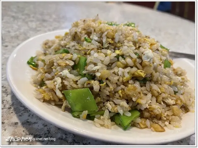 蛋炒飯的白飯雖然沒有煮得很粒,不過至少是分明不黏,溼潤度不差,蜿豆段、鹹菜碎分別帶上口感及鹹香,也平衡了油香感,有層次又耐吃。