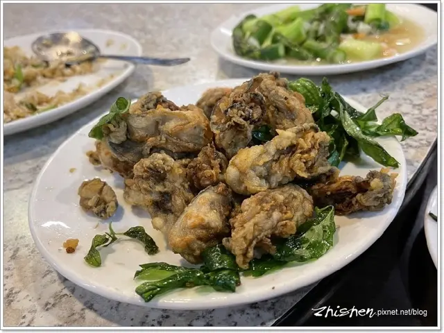 蚵仔酥裏的是粉漿不是地瓜乾粉,好的火侯拿捏,讓薄而酥脆的外緣口感及香氣更加出色,也更襯托出蚵仔本身的鮮而飽滿。