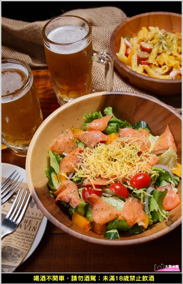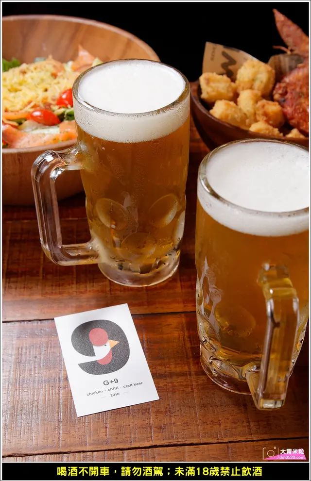 板橋美食推薦,G+9鮮釀餐廳,主打台灣在地精釀啤酒、鹹酥雞、麻辣、木盆沙拉、義大利麵,好吃平價餐點搭配美式工業風裝潢,加上店內備有55寸電視可觀賞運動賽事,每次有球賽便成為板橋鄉親最愛的宵夜聚餐處!不管男女生來過一次絕對都會愛上這裡!
