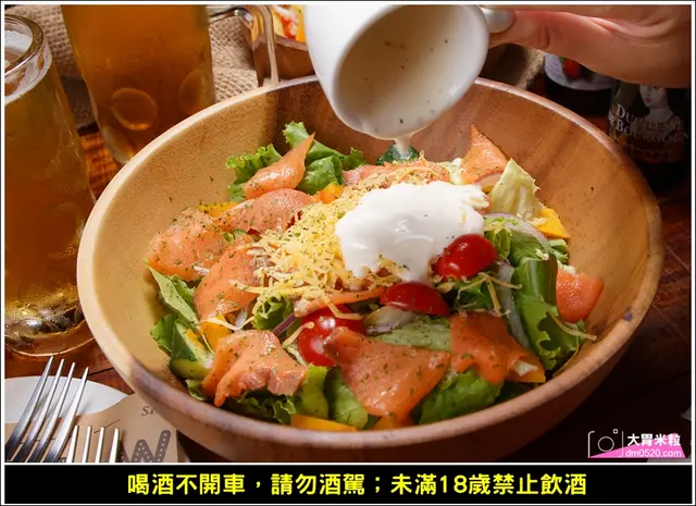 看看這煙燻鮭魚給得好大氣,搭配各種生菜時蔬還有滿滿的起司絲,