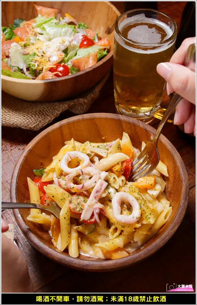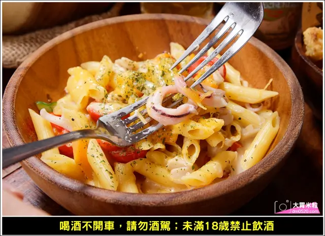 第一次吃到用木碗盛裝的義大利麵,看起來格外誘人