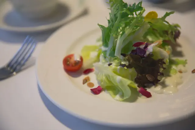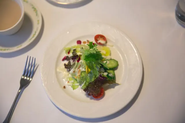 沙拉是搭配季節時蔬選擇,沙拉醬則是優格醬